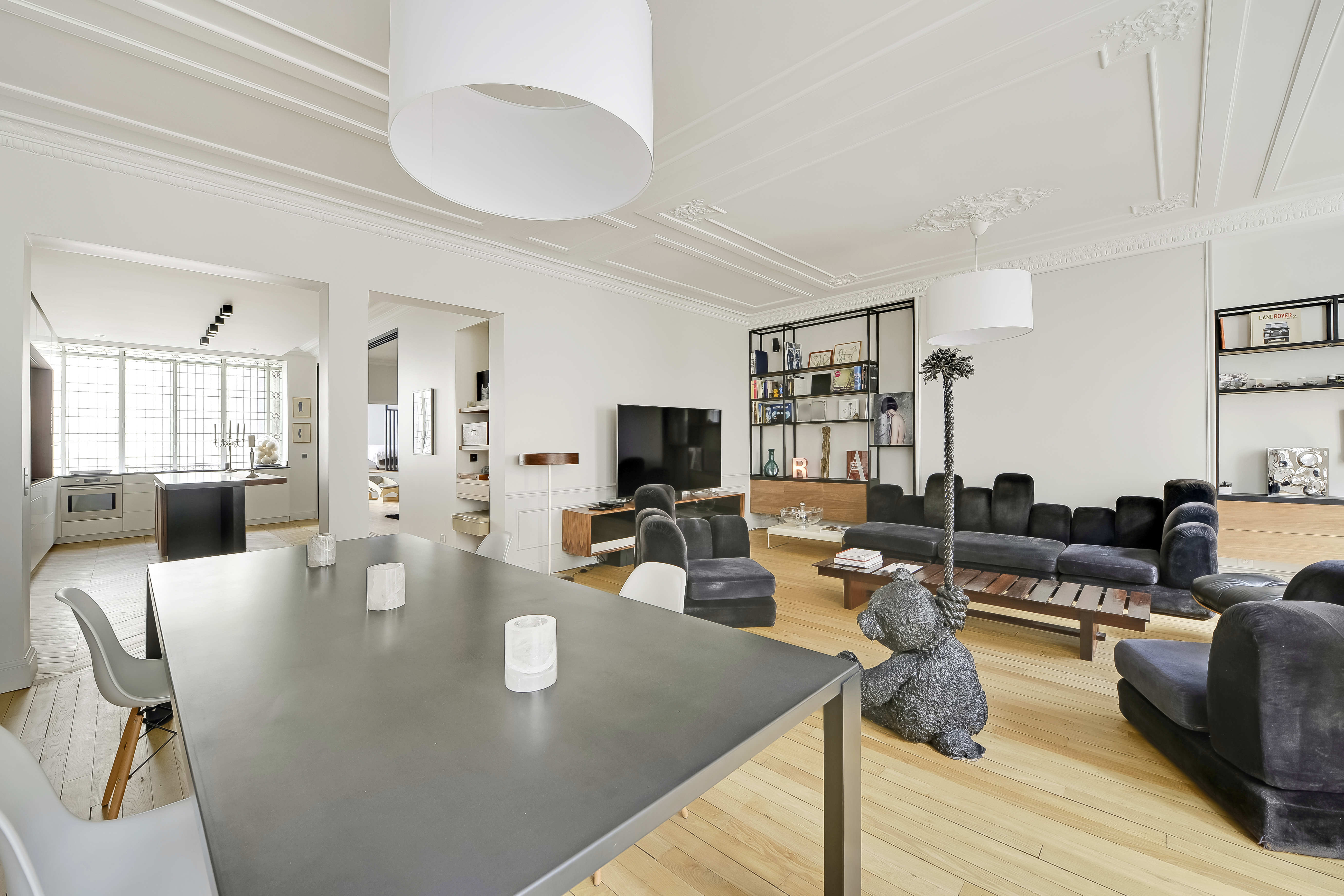 Dans ce magnifique appartement haussmannien situé au cœur de Paris, une rénovation complète a été menée avec soin pour allier le charme de l’ancien au confort du contemporain.