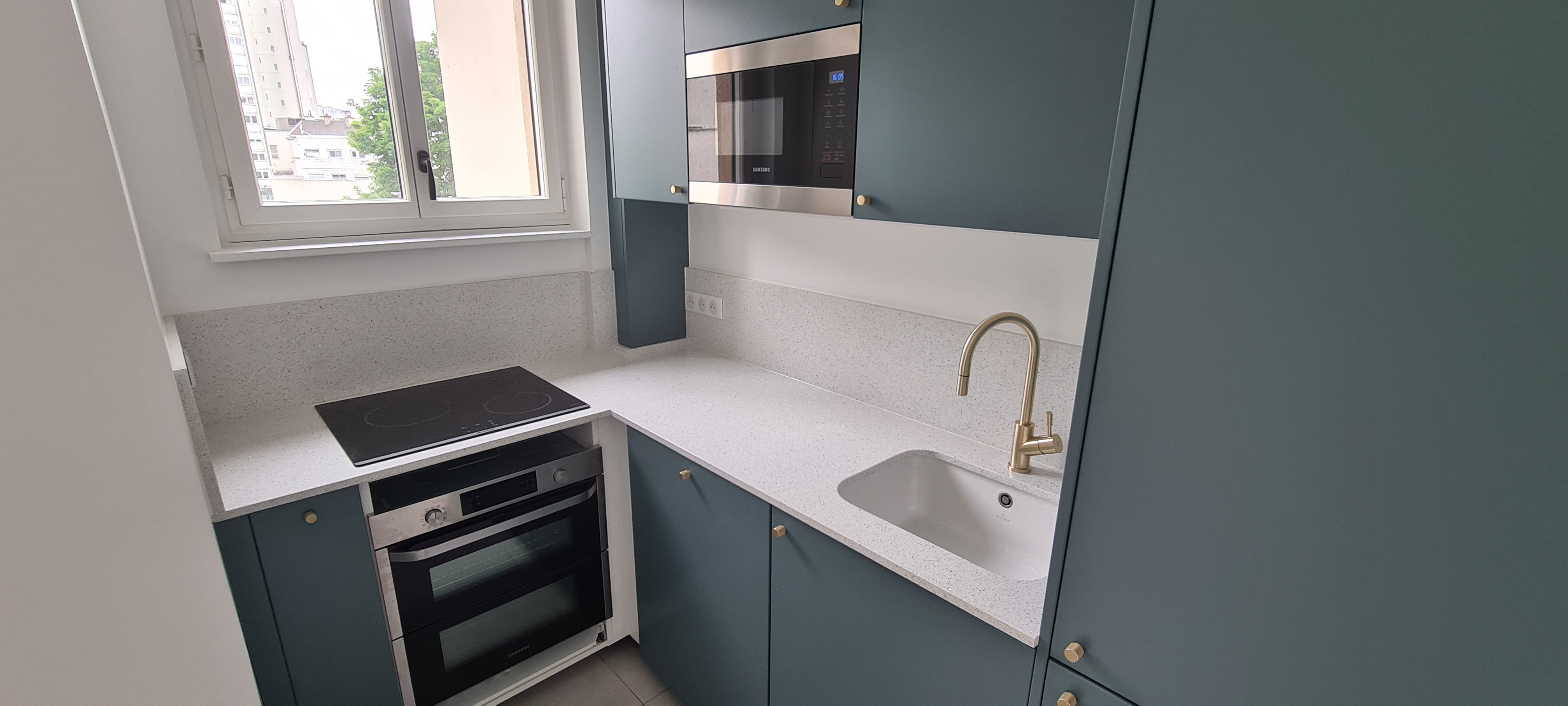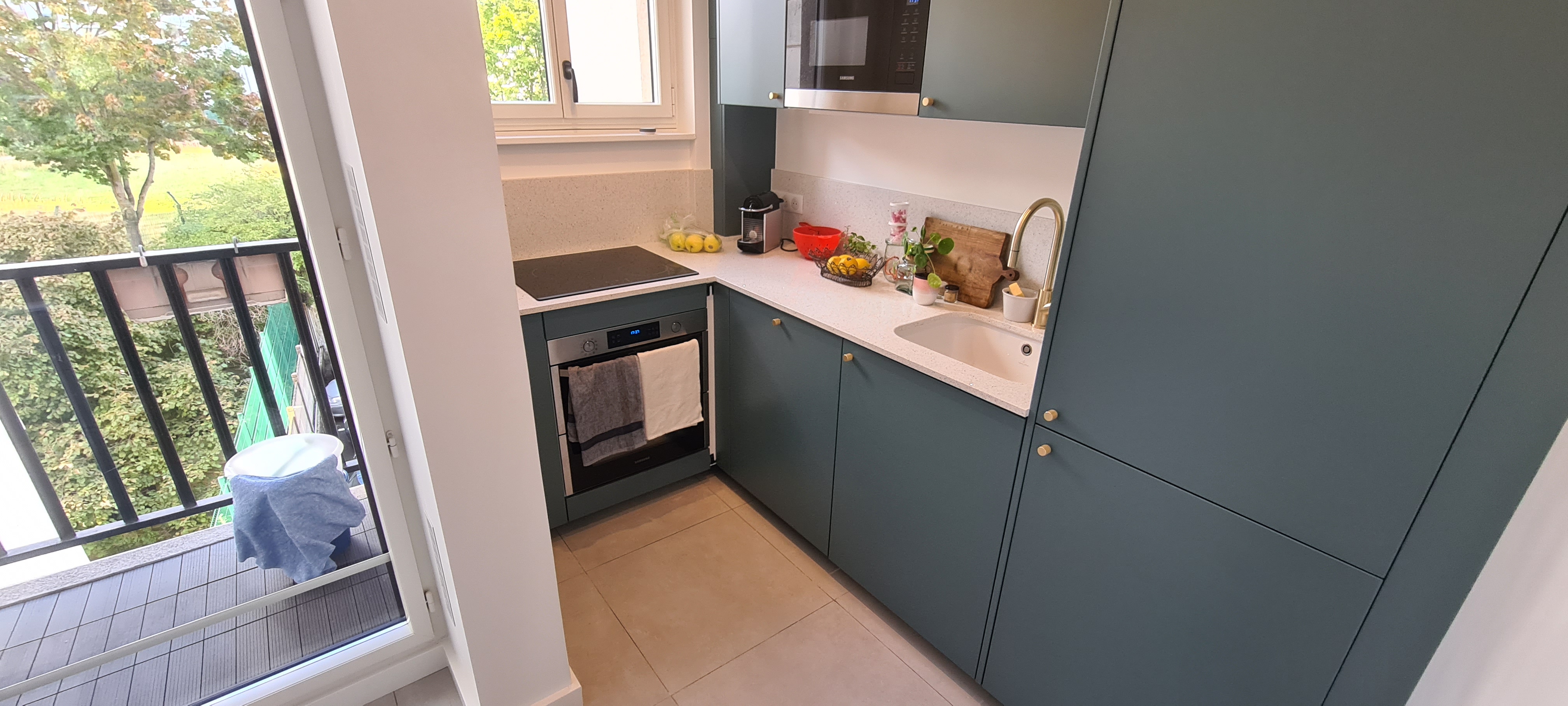Projet de grnade envergure où tous les corps de métiers ont été touché. Rénovation complète de l'électricité, des sols, de la cuisine. Remaniement complet du plan et construction de placards sur mesure pour optimiser les espaces. Brefs une réno comme on les aime.